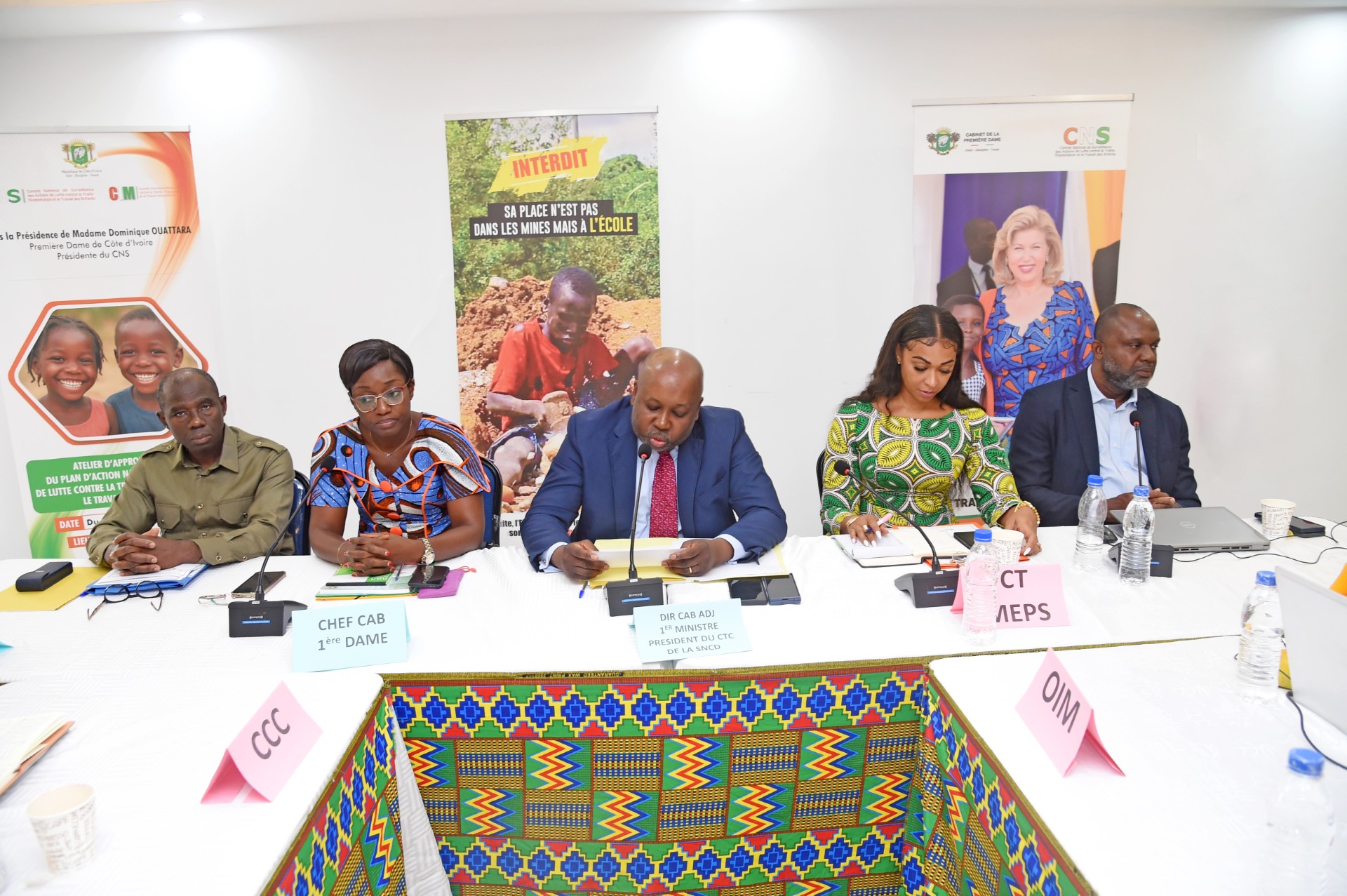 Du 1er au 3 octobre 2025, s’est tenu au Nouvel Hôtel le Rêve de Grand-Bassam un atelier d’appropriation du Plan d’Action National (PAN) 2025-2029 de lutte contre la traite, l’exploitation et le travail des enfants. Placée sous la présidence de Madame Dominique Ouattara, Première Dame de Côte d’Ivoire et Présidente du Comité National de Surveillance (CNS), cette rencontre visait à renforcer la compréhension et la bonne mise en œuvre de ce document stratégique par l’ensemble des parties prenantes.