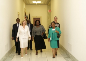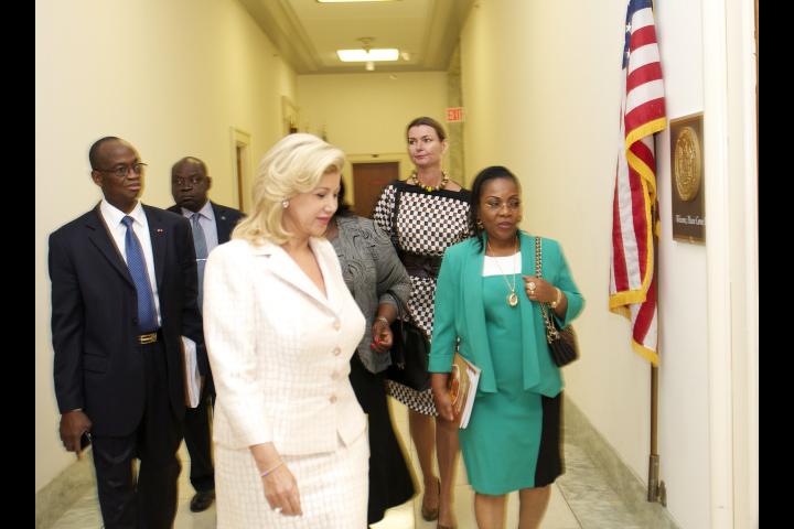 La Côte d’Ivoire a fait un pas de géant dans la lutte contre le travail des enfants. Et c’est pour partager cet engagement et la détermination de l’Etat de Côte d’Ivoire à remédier au phénomène de travail des enfants que la Première Dame multiplie les audiences et les rencontres à Washington. Après le ministère du travail où elle a participé à la réunion annuelle du groupe de coordination des actions de lutte contre le travail des enfants, la Présidente du Comité national de surveillance des actions de lutte contre la traite des enfants a été reçue, le jeudi 25 juin 2015, en début d’après-midi au Congrès américain par l’honorable Eliot Engel et l’honorable Karen Bass.